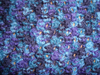 Very BlueBerry Bag. I like this varigated look better than the BS yarn. Made trip OK. See you Monday.